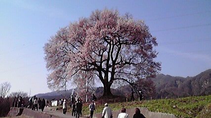 わに塚の桜は、朝から観光客でいっぱいでした。