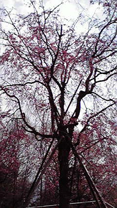 遊歩道を上り続けるとたどり着く芝生広場。そこにひっそりと咲く、しだれ桜。