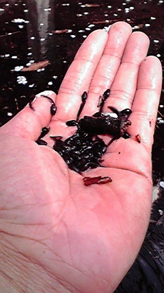 愛宕山少年自然の家近くの池には、オタマジャクシがびっしり!