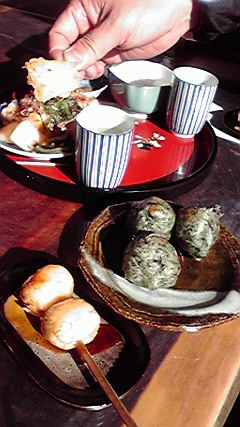 さらに、私たちがあまりにもイケメンだったので、サービスとして白い団子(あんこ入り)も出てきました。