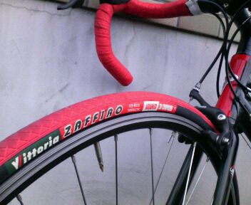Vittoriaの製品では一番安いもので、定価は1本¥2100。篠原さんで、¥1785×2本を購入してきました。ホントは、予算的にはもう少しグレードの高いものをと思っていたんですけど、「練習用でしょ、これで十分ですよ。」との一声で、ケテーイ!