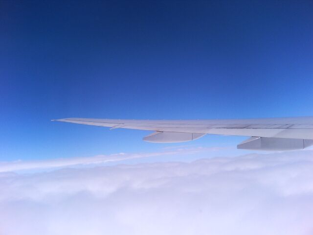 帰りの飛行機の窓から。雲の上には青い空がありました。