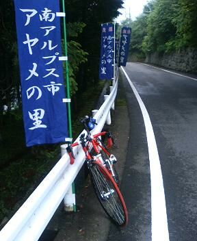 林道は舗装されているけど、砂利が多くパンクしそう。途中、カブトムシを捕っている湘南ナンバーの車が止まっていました。